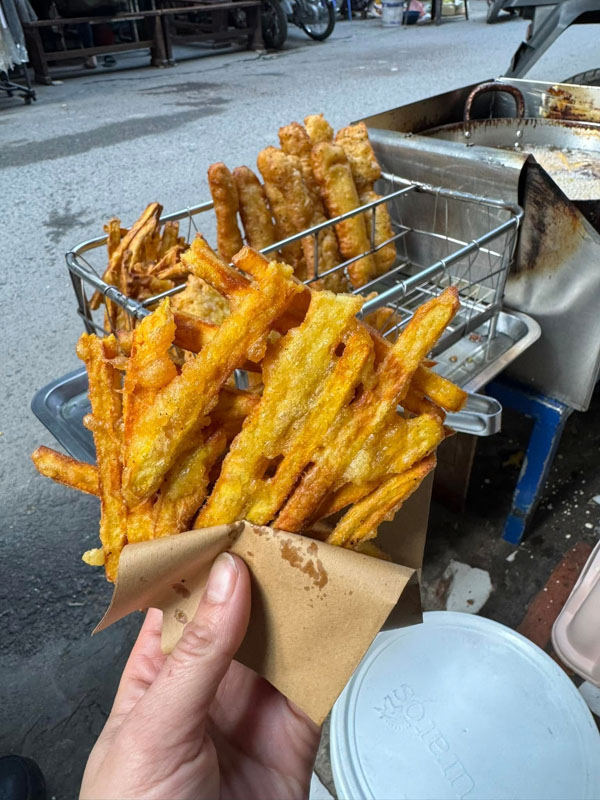 - Tour guides will take tourists to eat at lots of special corners , alleys and restaurants of The Old Quarter that you might miss if you go by yourself to try variety of street foods and drinks such as:Bún chả ( Grilled pork with noodle), Phở bò,gà ( Beef, chicken noodle soup), Bún ốc (Snail noodle soup), Bánh cuốn ( Steamed rice papper rolls), Bánh gối ( Pillow dumpling), Nem rán ( Fried spring rolls), Bánh tôm (Shrimp dumpling), Bánh Mỳ (Vietnamese sandwich), Chè ( Sweet gruel soup), Bánh Bao (Vietnamese dumpling), Bánh khoai, chuối ( Sweet potato,Banana cake), Hoa quả dầm ( Mixture fresh-fruit), Bia Hơi (Fresh beer), Trà đá (Iced tea), Café trứng (Egg coffee) ……. -