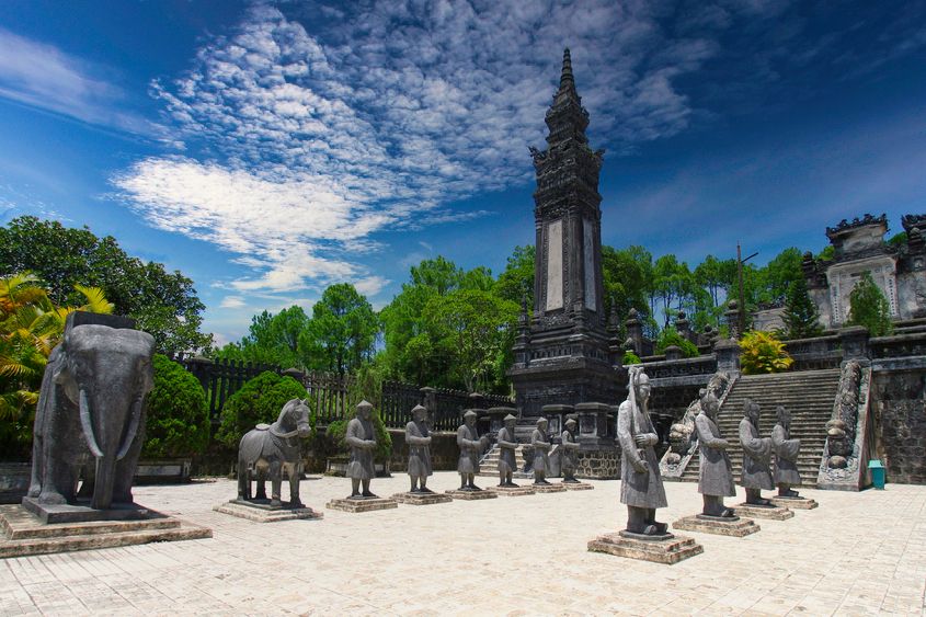 In the afternoon, we will visit two royal tombs Minh Mang and Khai Dinh with traditional architecture and French-influenced style, respectively.